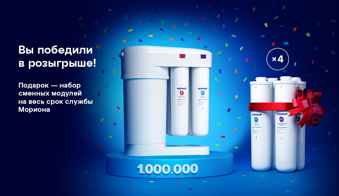 Примерно к октябрю вся партия разъехалась по стране, и мы решили провести розыгрыш. В качестве подарка остановились на комплектах модулей на весь срок службы Мориона. Участникам необходимо было зарегистрировать серийный номер своего фильтра в сервисе напоминаний.